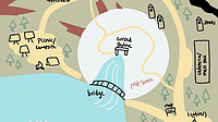 Our project is about a young child's experience at a summer camp, so I thought of landmarks related to summer camp activities, from picnic areas to cafeteria and other natural landscape for exploring...